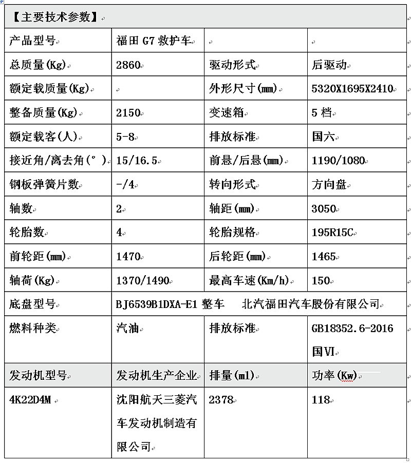 • 福田G7長(zhǎng)軸救護(hù)車(chē)