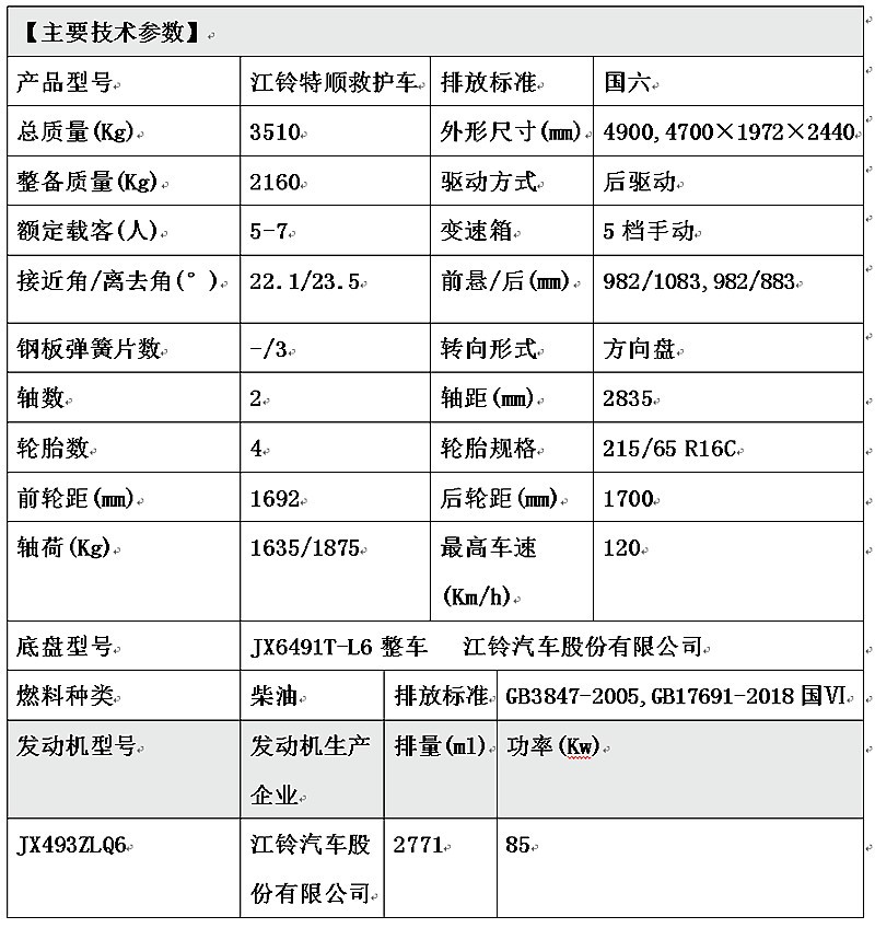 • 江鈴特順短軸中頂柴油版救護(hù)車